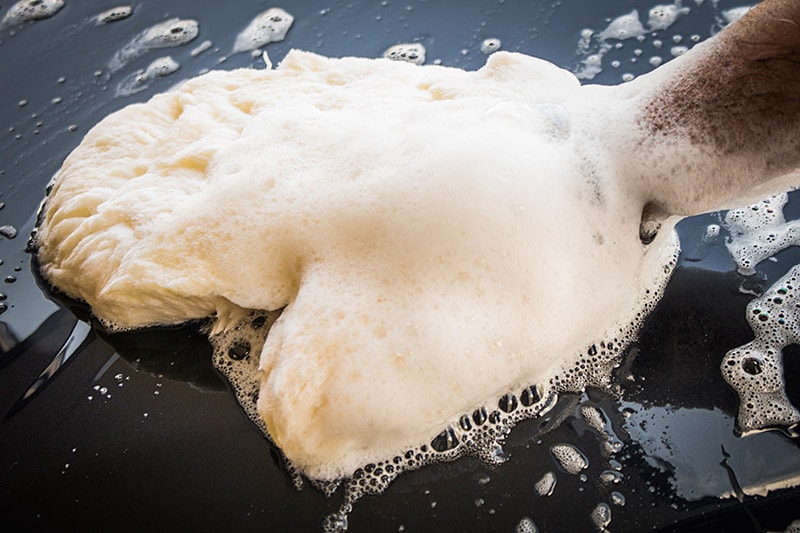 | Paso 3 | Utilizar el guante con un champú de lavado de coches de alta calidad, que aporte lubricación y limpieza. |